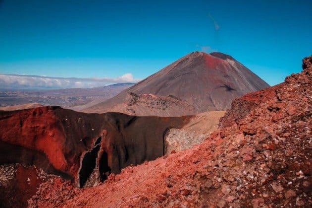 - Mount Ngauruhoe: In clear weather, you’ll be able to see the distinctive form of Mount Ngauruhoe from the start of the hike, but once you’ve cleared the Saddle, it’ll be even more prominent. This is Mount Doom, the same active volcano that was used in the Lord of the Rings movies. There is a detour, which begins at the Mangatepopo Hut, and that will take you up the mountain itself. This is for experienced hikers only and will take at least 3 hours return from the Tongariro Crossing trail.